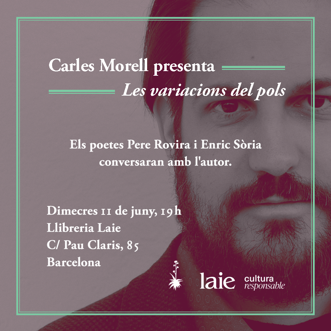 L’escriptor Carles Morell presentarà el seu darrer dietari, Les variacions del pols, el dimecres 11 de juny a les 19 h a la llibreria Laie. Els poetes Pere Rovira i Enric Sòria conversaran amb l’autor.