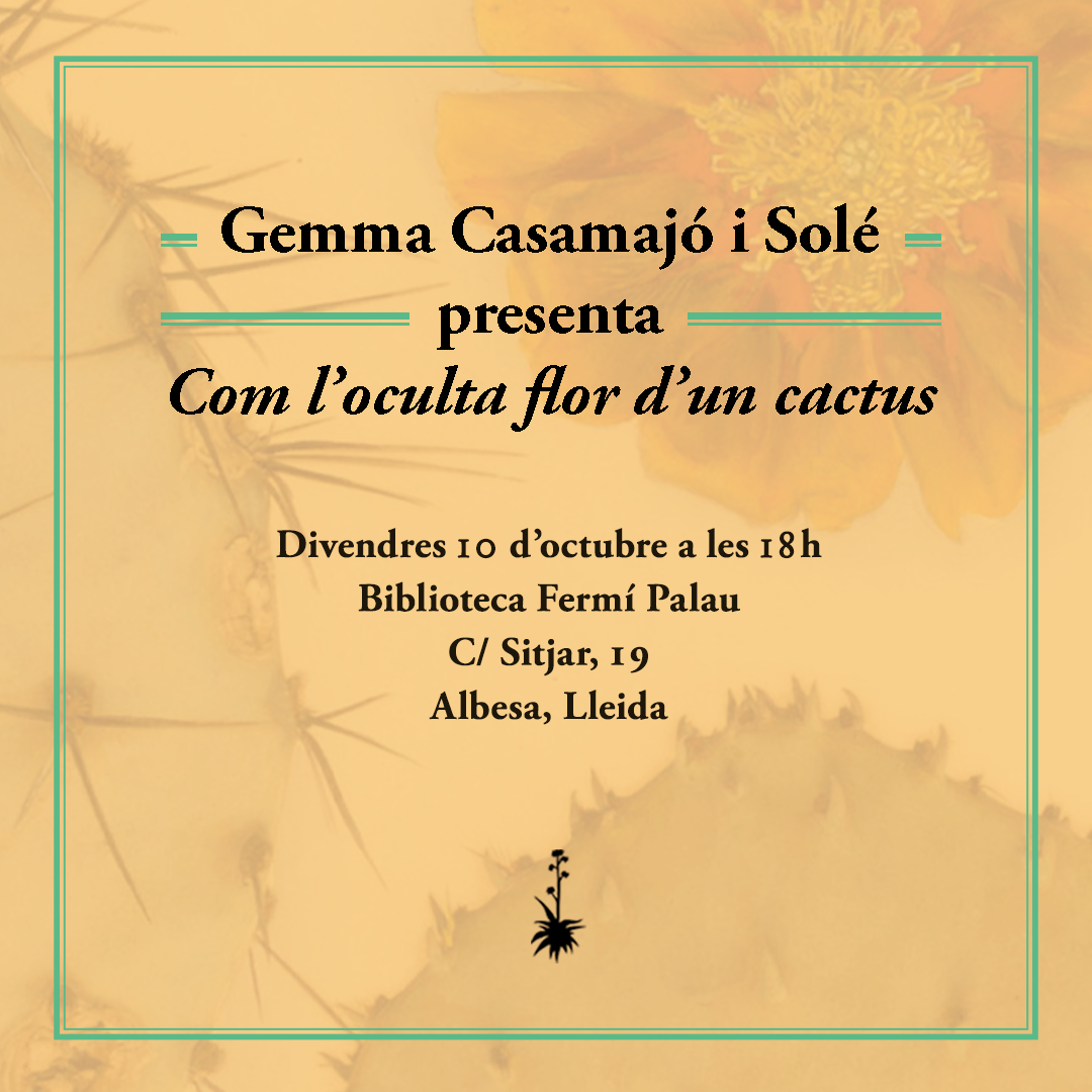 La poeta Gemma Casamajó i Solé presentarà el seu darrer llibre de poesia, Com l’oculta flor d’un cactus, el divendres 10 d’octubre a les 18 h a la Biblioteca Fermí Palau.